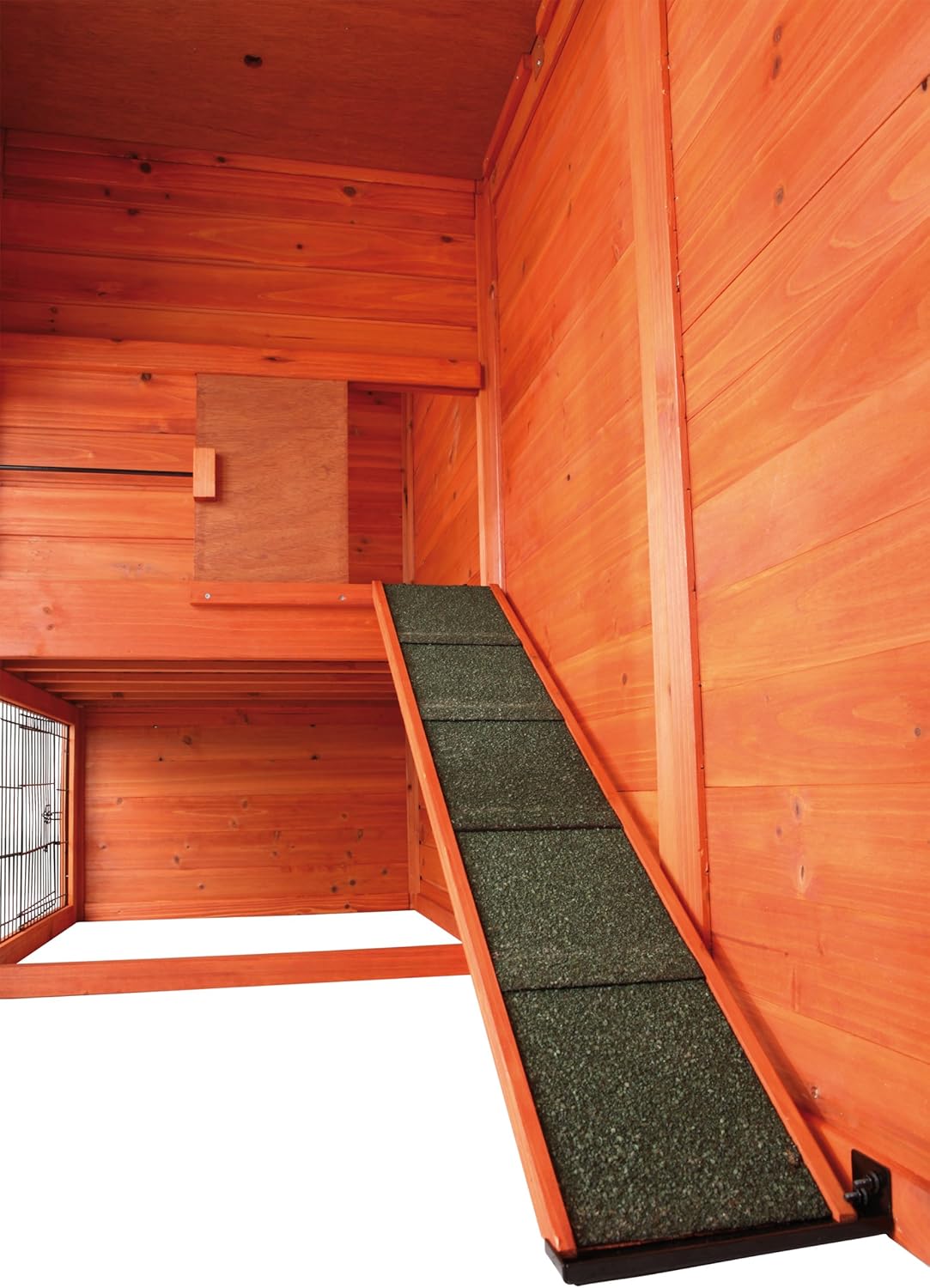- Non-slip ramp and hatch door to restrict access between levels