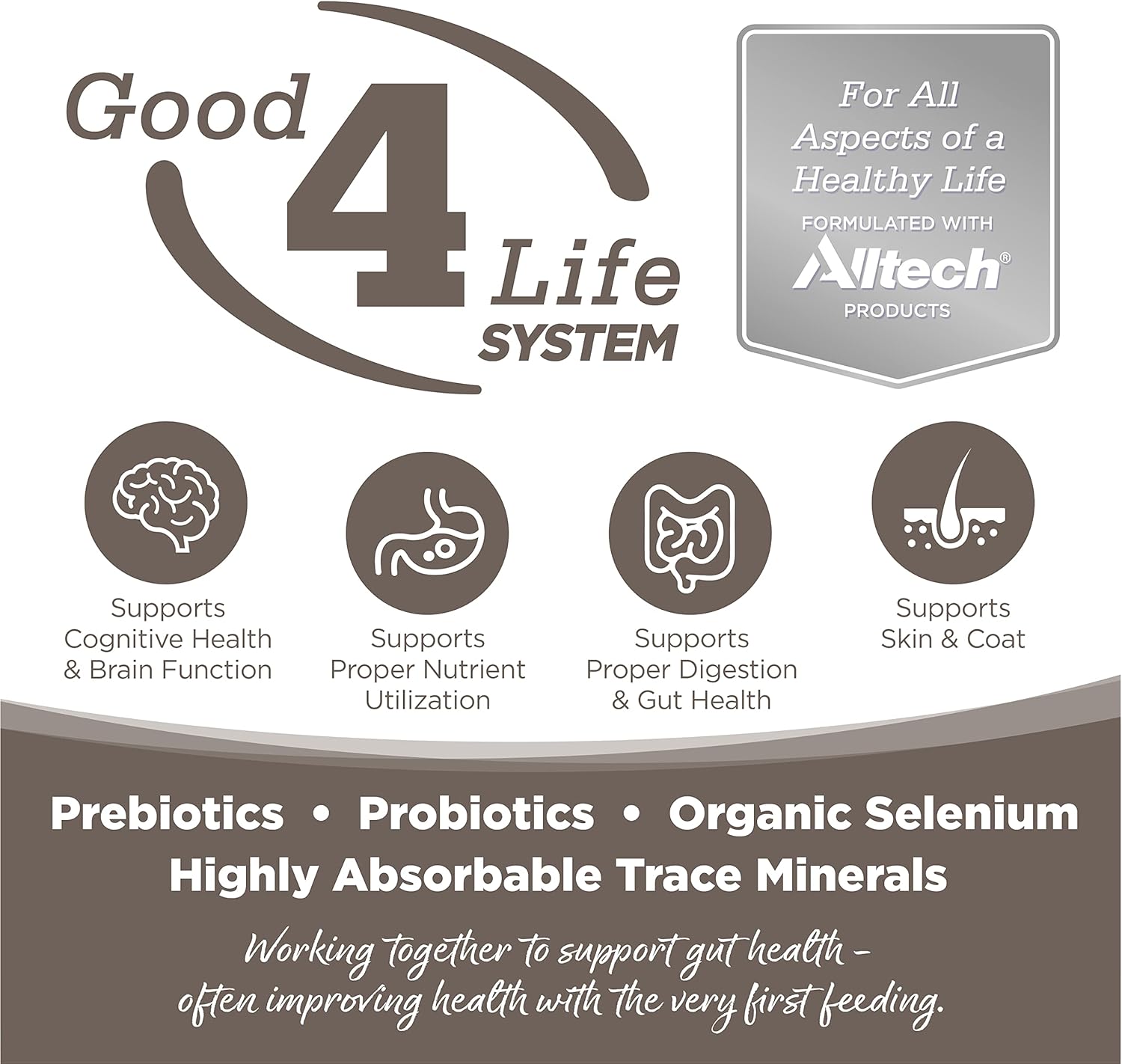 - Our proprietary Good 4 Life system includes 4 key ingredients that work together to support gut health and the overall well-being of your pet