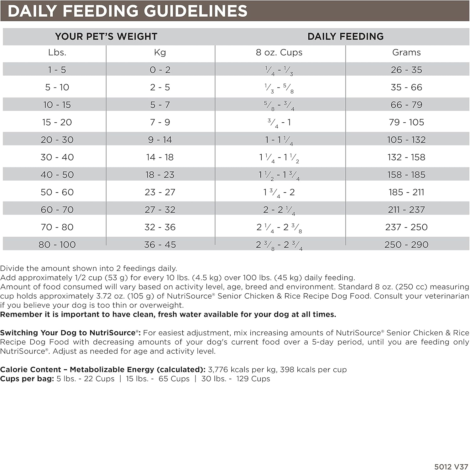 - As a member of our grain inclusive series of dog foods, NutriSource Senior Chicken & Rice Recipe is formulated to meet AAFCO guidelines for maintenance of adult dogs