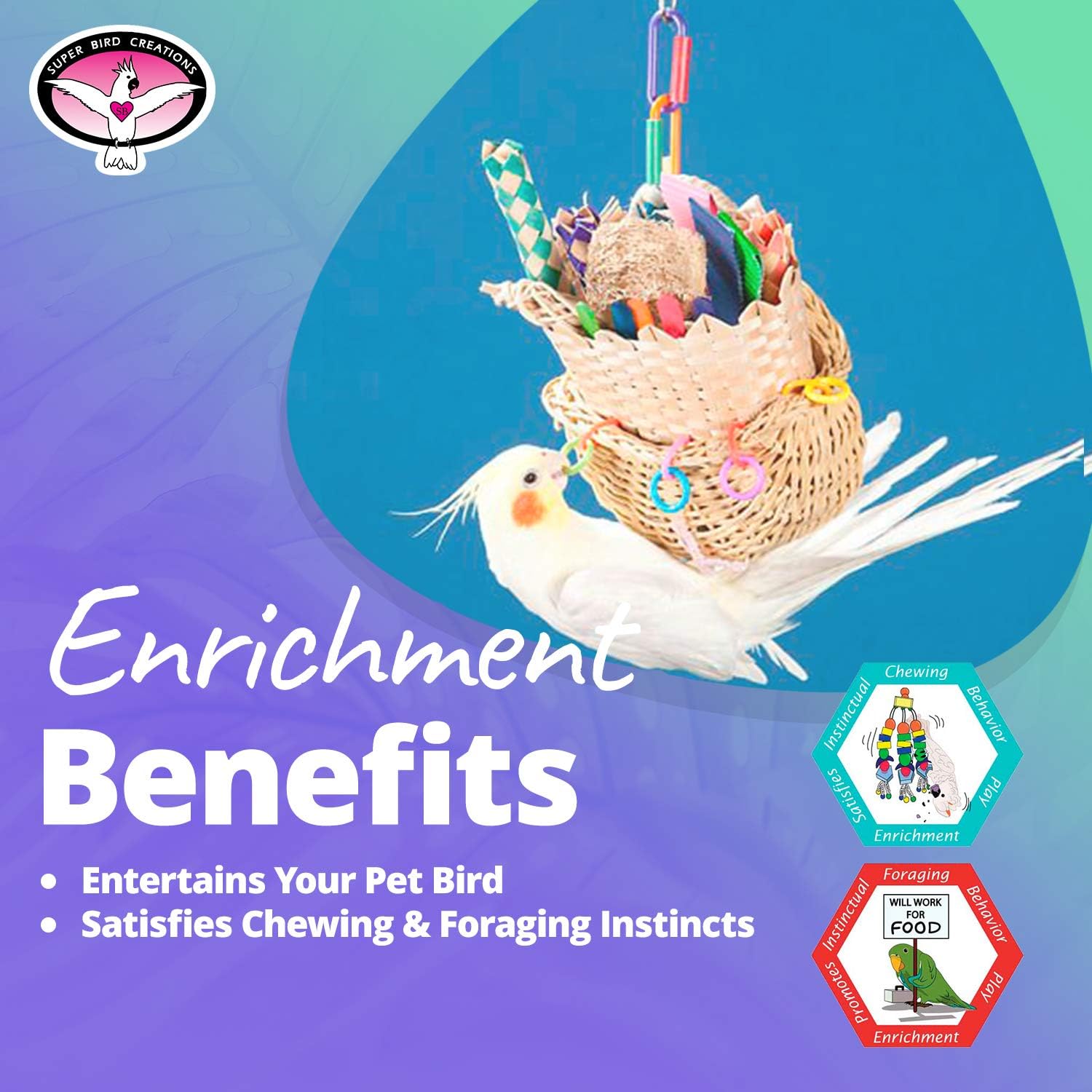 - SAFE & EXPERTLY DESIGNED: Trusted by avian professionals worldwide, our bird toys are expertly crafted with bird-safe components and design. Your bird's safety and enrichment are our top priorities. Proudly assembled in the USA since 1992, you can trust in the quality and care that goes into every Super Bird Creations product. Intended for Pet-Use only.