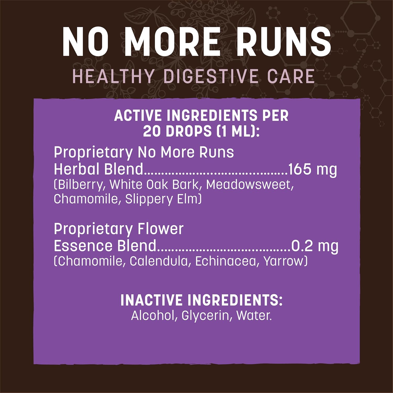 - NO MORE RUNS: Daily homeopathic drops may help during peak times of digestive upset.