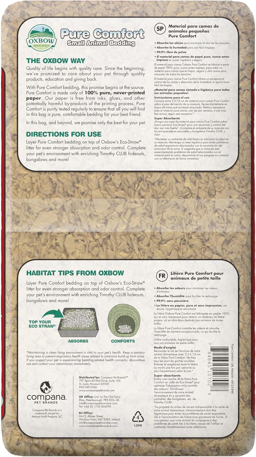 - PURE PAPER FOR SAFETY & COMFORT: Made from never-printed paper, Oxbow bedding is ultra-soft, hygienic, and contains no inks or dyes; Perfect for rabbit litter boxes and guinea pig cages, it provides a cozy and safe habitat for your small pets