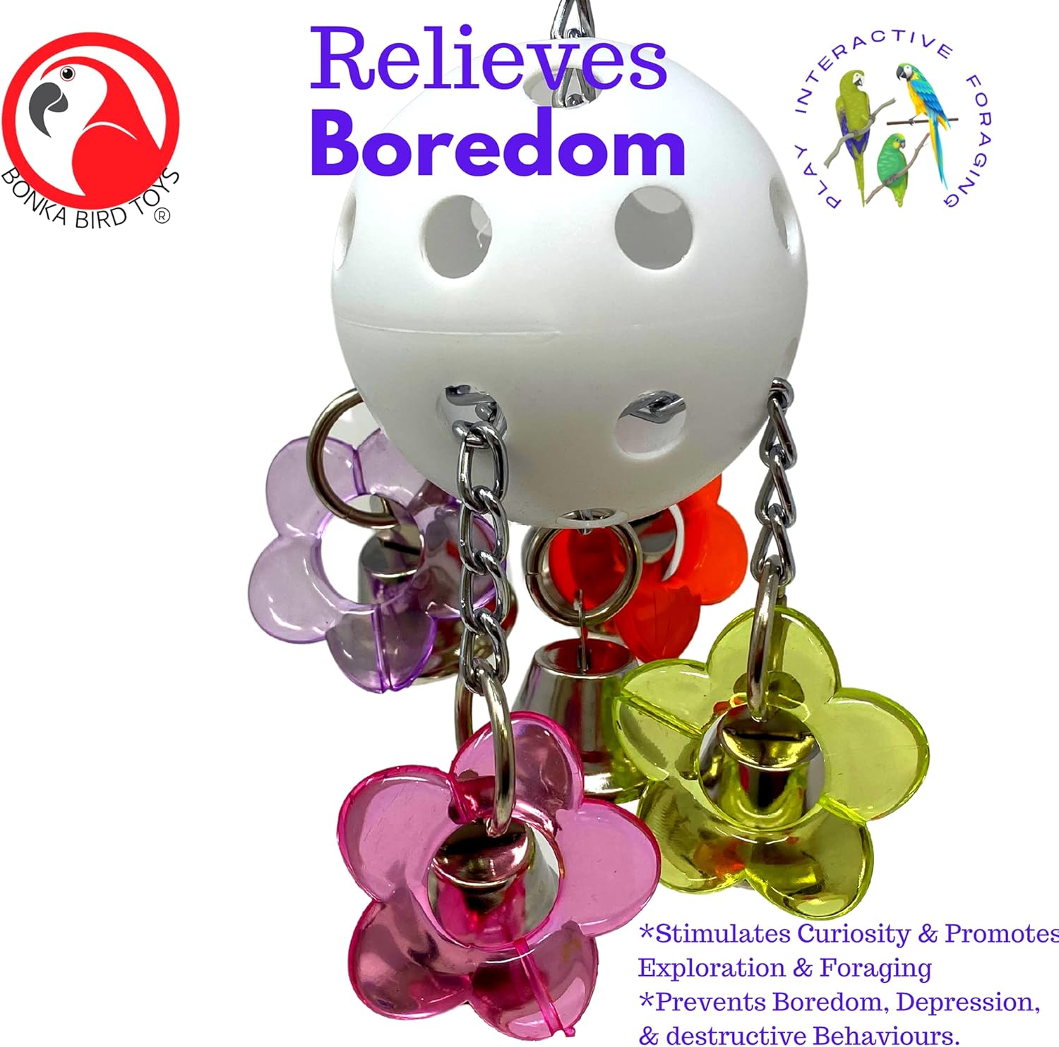 - This durable bird toy provides a fun and colorful interactive experience for your pet bird.