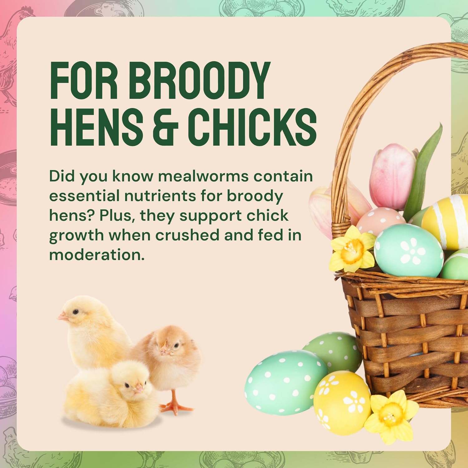 - Versatile Treats For All: The Hatortempt dried worms for chicken aren't just for chickens! Use this chicken feed for laying hens as duck food, quail food, or fill your wild bird feeder. This pack of meal worms for chickens makes a protein-rich choice for various pets