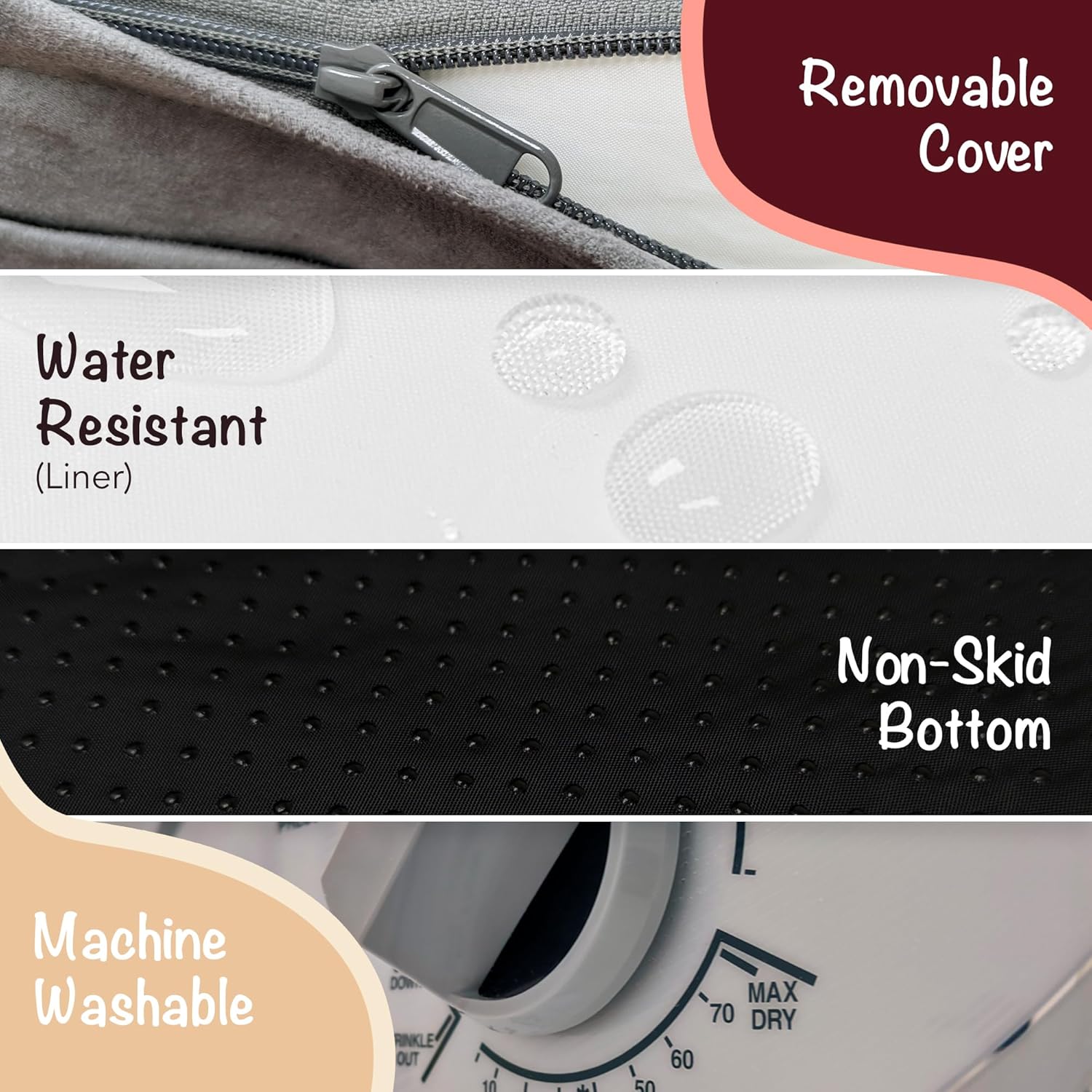 - Special Feature : Machine Washable, Non Skid Bottom, Orthopedic, Padded, Removable Cover