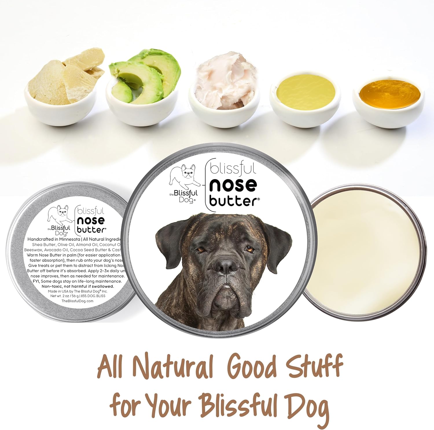 The Blissful Dog Cane Corso Nose Butter for Dry, Cracked Skin, Lick-Safe Dog Nose Balm with Moisturizing Shea Butter, Almond, Olive, and Essential Oils, Pet Supplies, Uncented, 2 oz.
