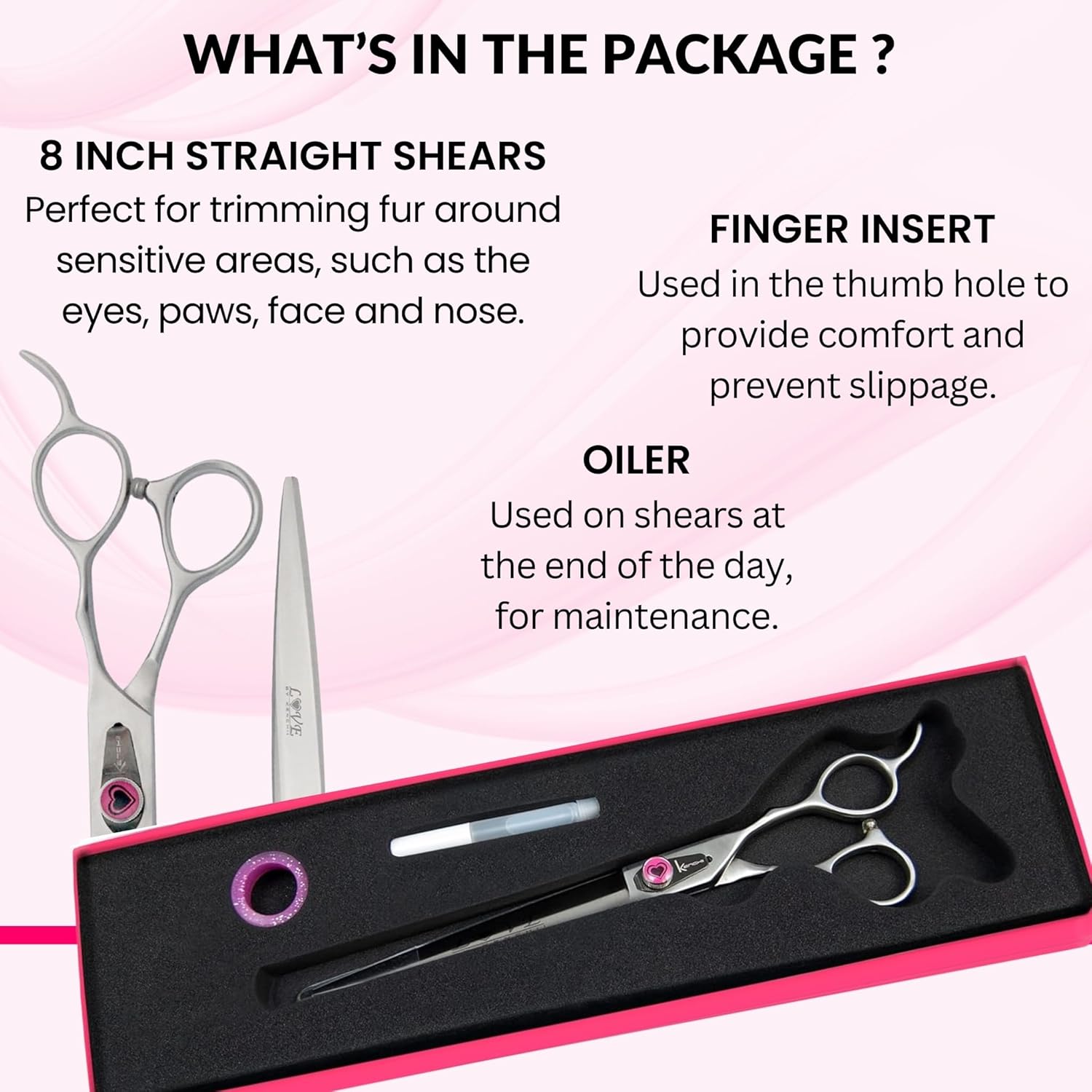 Kenchii Love Dog Grooming Scissors, 8 Inch Straight Shears, Dog Scissors for Grooming, Professional Pet Grooming Scissors, Heavy Duty, Durable and Sharp