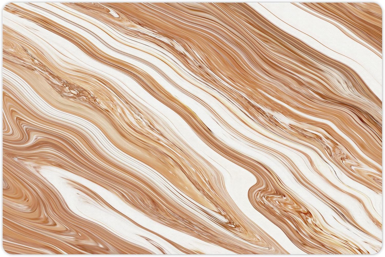 Lunarable Marble Pet Mat for Food and Water, Wavy Colored Fluid Earthen Toned Unusual Classic Retro Print, Non-Slip Rubber Mat for Dogs and Cats, 18" X 12", Cinnamon Cream