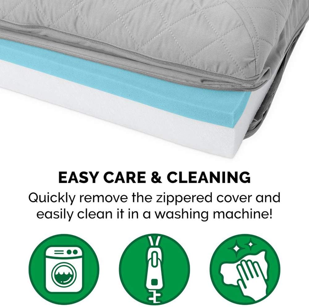 - EASY ON JOINTS: The gel top helps whisks heat away and contours to your pet's figure to cushion pressure points and improve body alignment; fluff-filled bolsters support the neck, back, hips, and joints to help ease discomfort and promote restful sleep