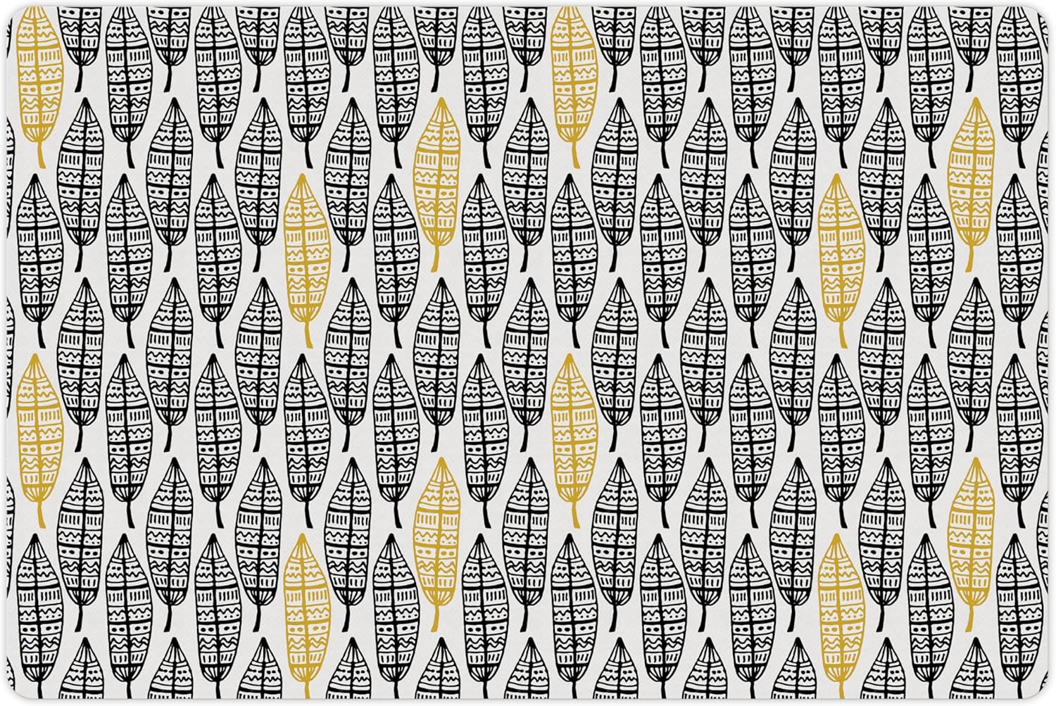 Lunarable Aztec Pet Mat for Food and Water, Modern Graphic of Ornate Hand Drawn Style Old Feather Form with Aztec Lines Print, Non-Slip Rubber Mat for Dogs and Cats, 18" X 12", Charcoal Yellow