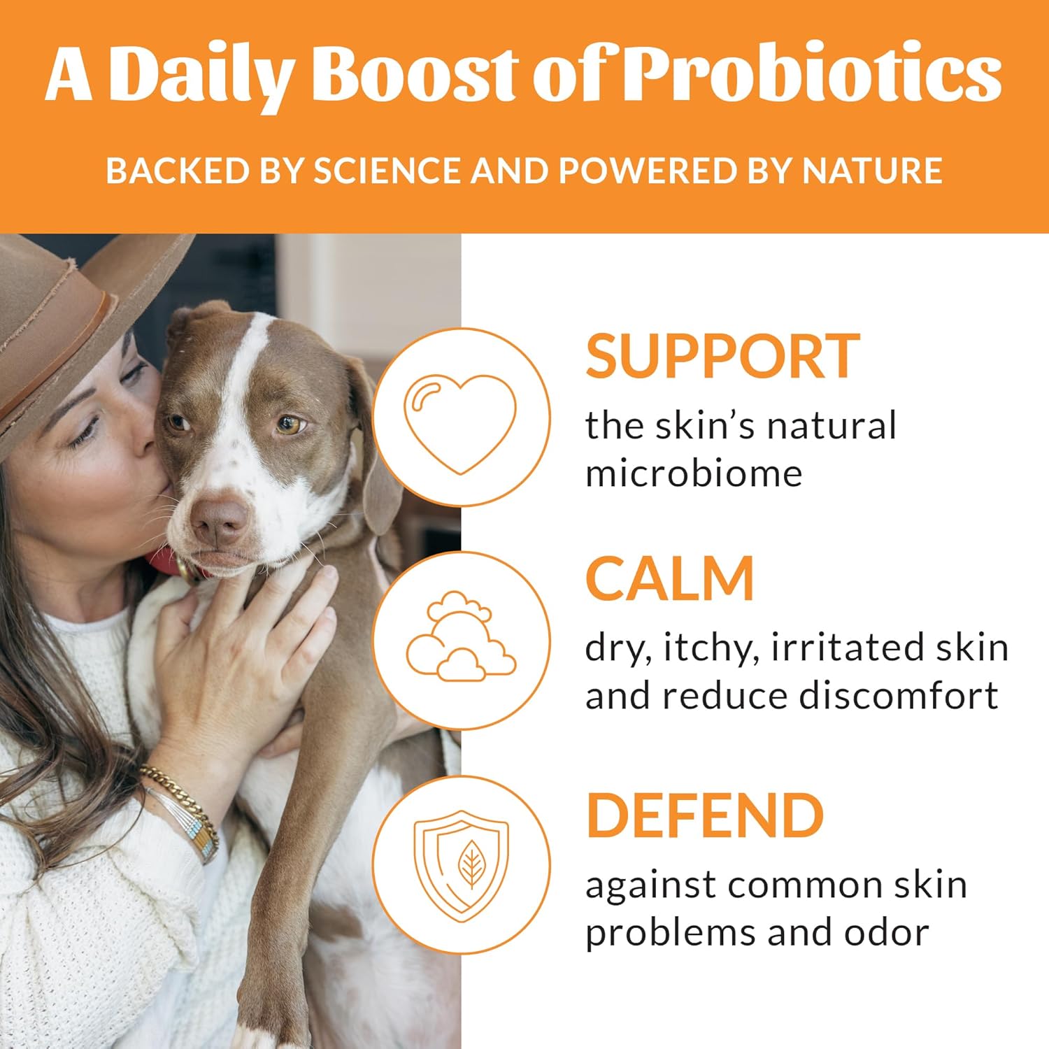 - Probiotic Formula- Each bottle contains topical probiotics that help support a healthy microbiome to defend against common skin problems such as itching, odor, dryness, dandruff, hot spots, and excessive shedding.