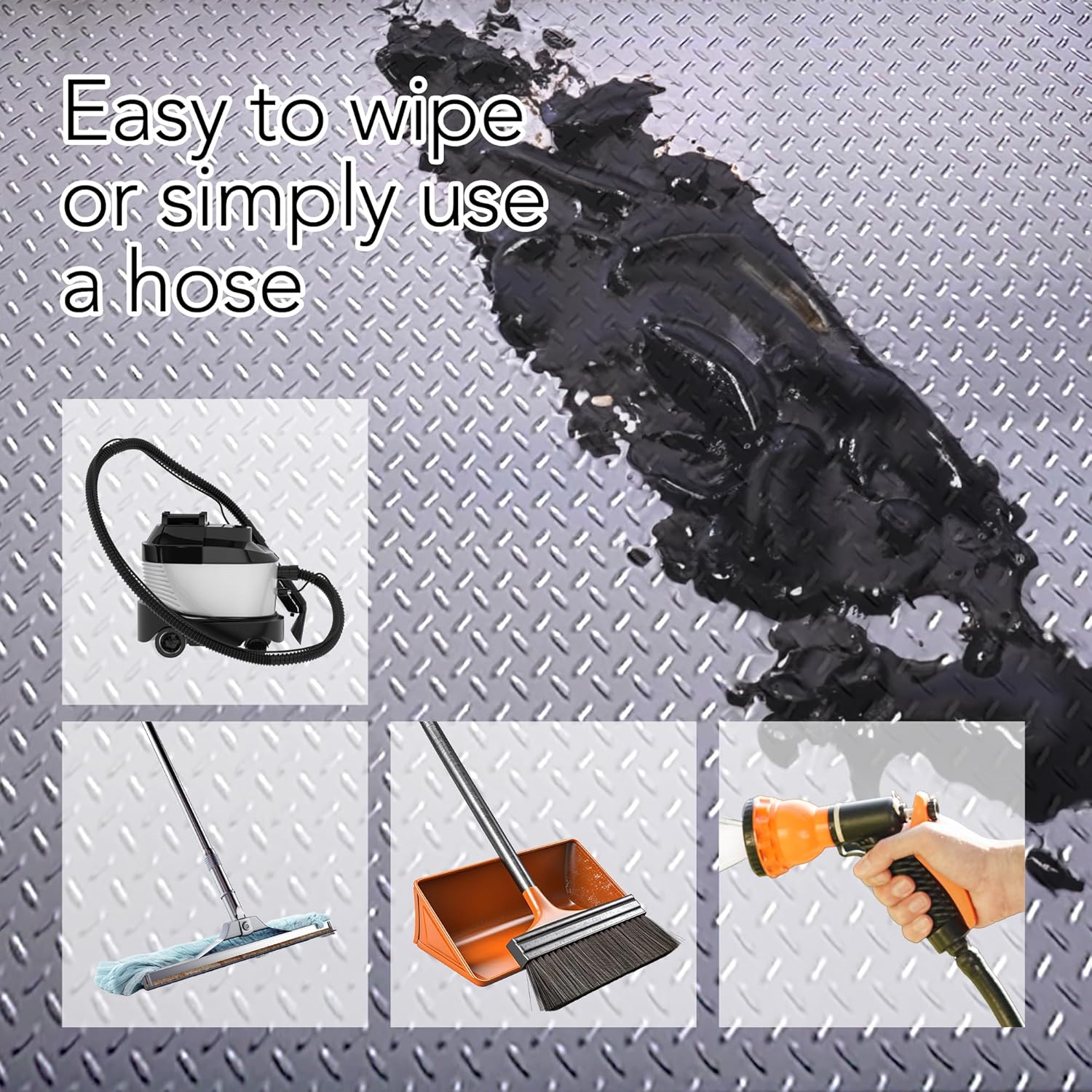- THE DAMAGE-DEFYING SOLUTION TO SPILLS & STAINS: Safeguard your indoor/outdoor flooring from stubborn grease, rust, oil spills, tire skids, leaks, and more with our durable vinyl mat, designed to deliver unbeatable protection against costly damage