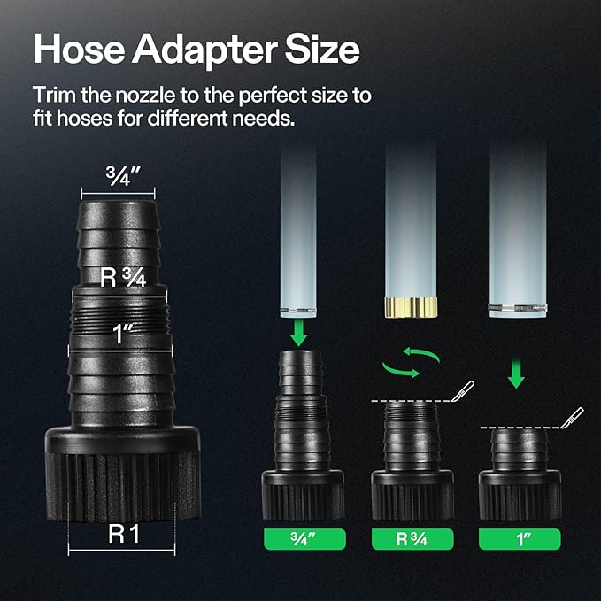 - Easy Installation: Adjustable outlet direction and 20.3FT power cord, to meet different requirements; Flexible Tube Size: 3/4” or 1” internal diameter; It can be worked with filters (filter system) together