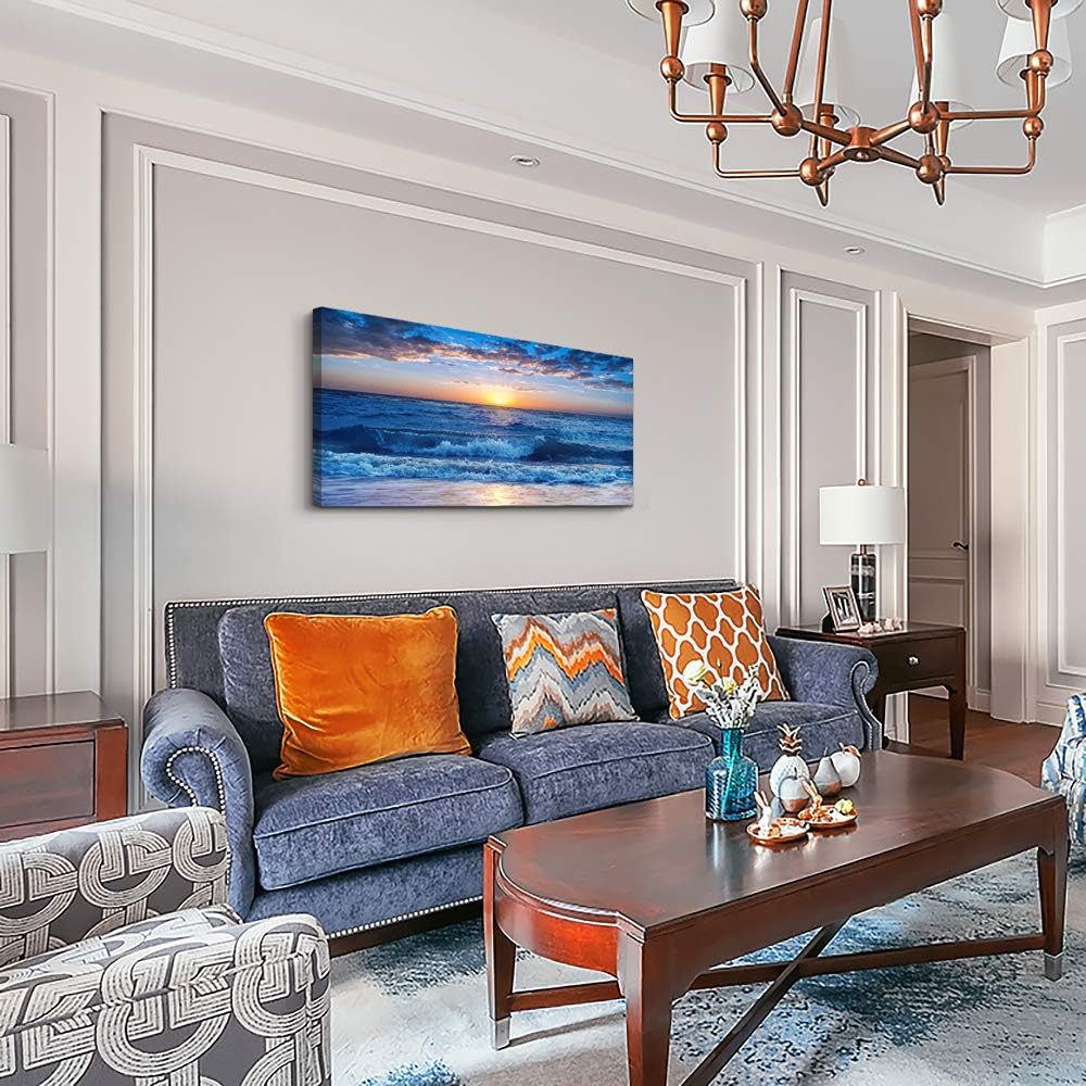 canvas wall art for living room Blue Ocean Sea sun landscape painting bathroom Wall Decor Ready to Hang for Home Decorations office family bedroom kitchen Works canvas Prints pictures 24" x 48"inch