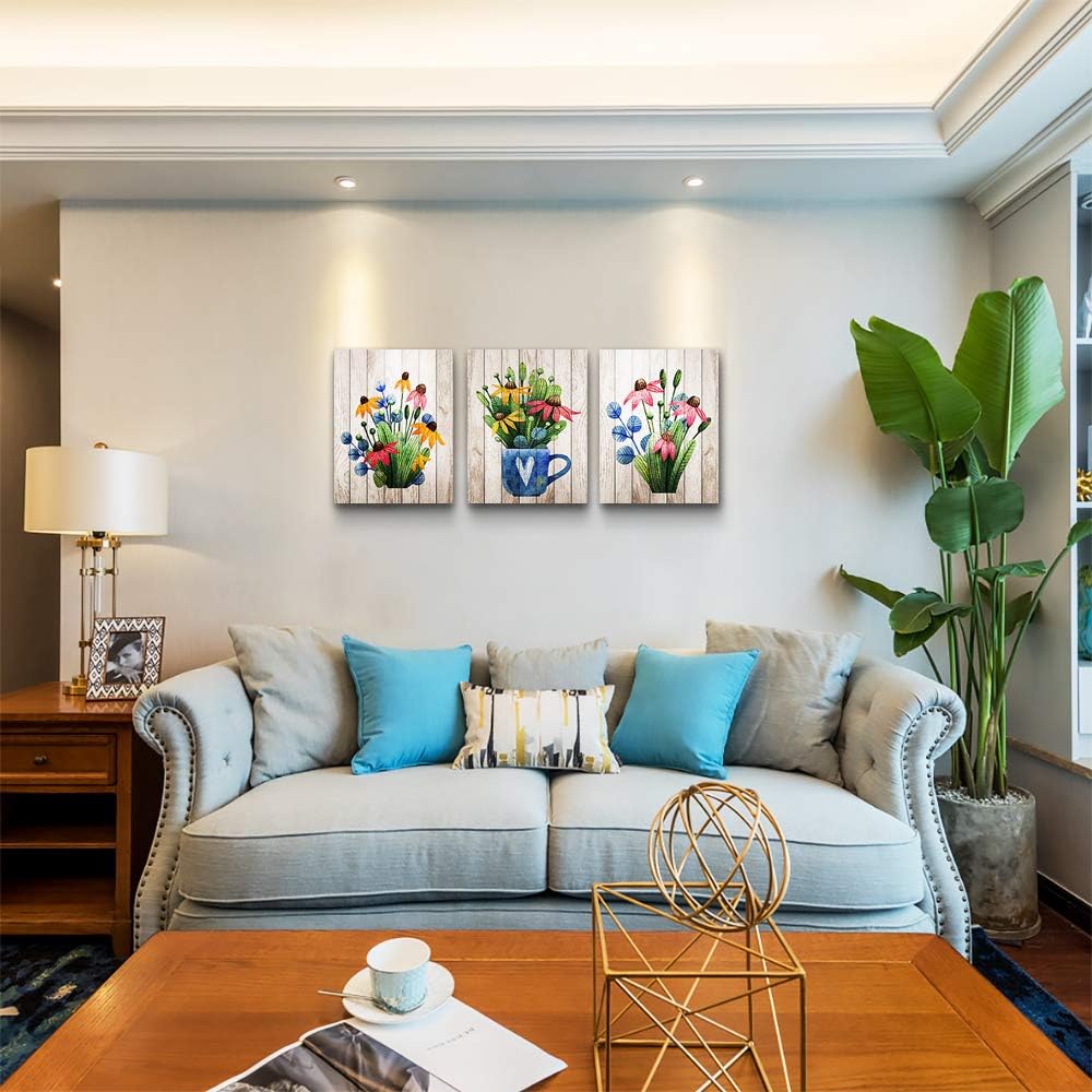 Vintage Wood grain plant flowers wall art for kitchen Wall Decorations for Living Room Bathroom Decorations room Wall decor 3 Pieces Framed Canvas print Artwork modern Office Home Decor paintinge
