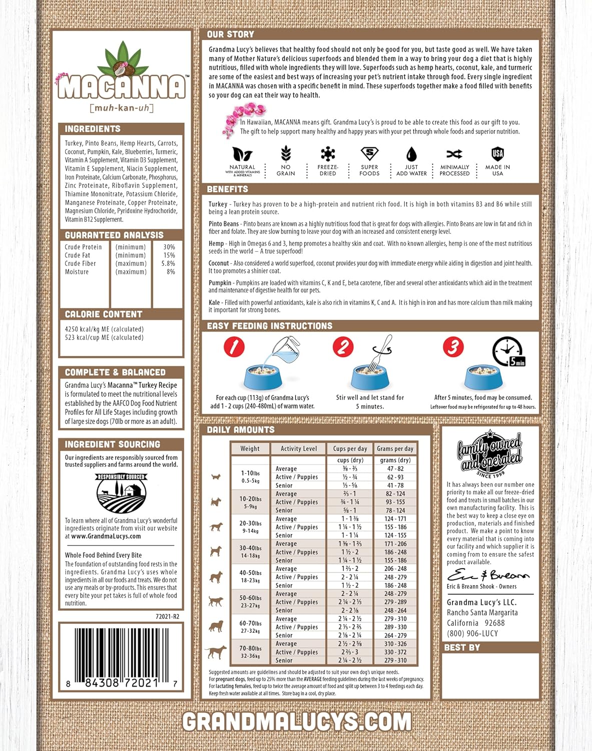 Macanna Grandma Lucy's Grain-Free Turkey Freeze-Dried Dog Food 3 Lbs., Brown
