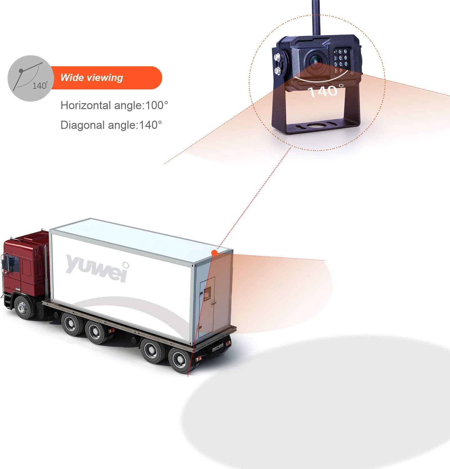 - ★ Better & clear image quality Full HD 720P wireless rear view camera, it is IP69k waterproof with infrared clear night vision looks further distance up to 10meters under low light environment and wide viewing angle of 120° covers whole blind spot, its rustless well-constructed housing and bracket are enable cameras withstand harsh environment.