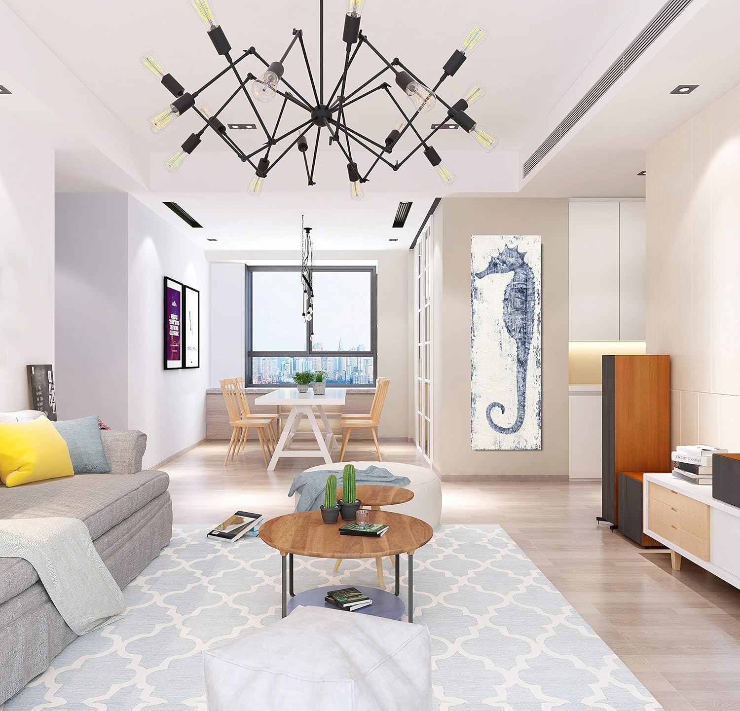 Yihui Arts Seahorse Canvas Wall Art Hand Painted Blue and White Painting Modern Coastal Pictures for Living Room Bedroom Hallway Bathroom Decoration