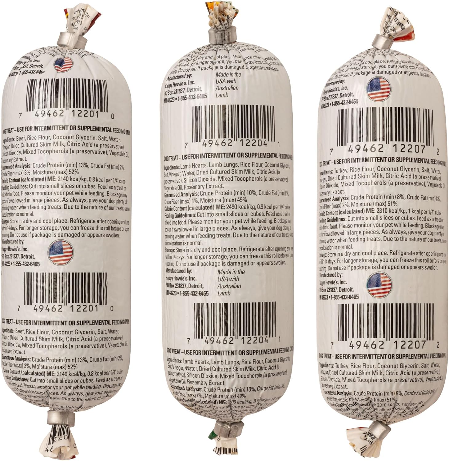 Happy Howie's Soft Meat Roll Treat - Soft Dog Food Rolls, Natural Ingredients, for All Dogs, Made in USA - Beef, Lamb, Turkey, 7 Oz (Pack of 3)