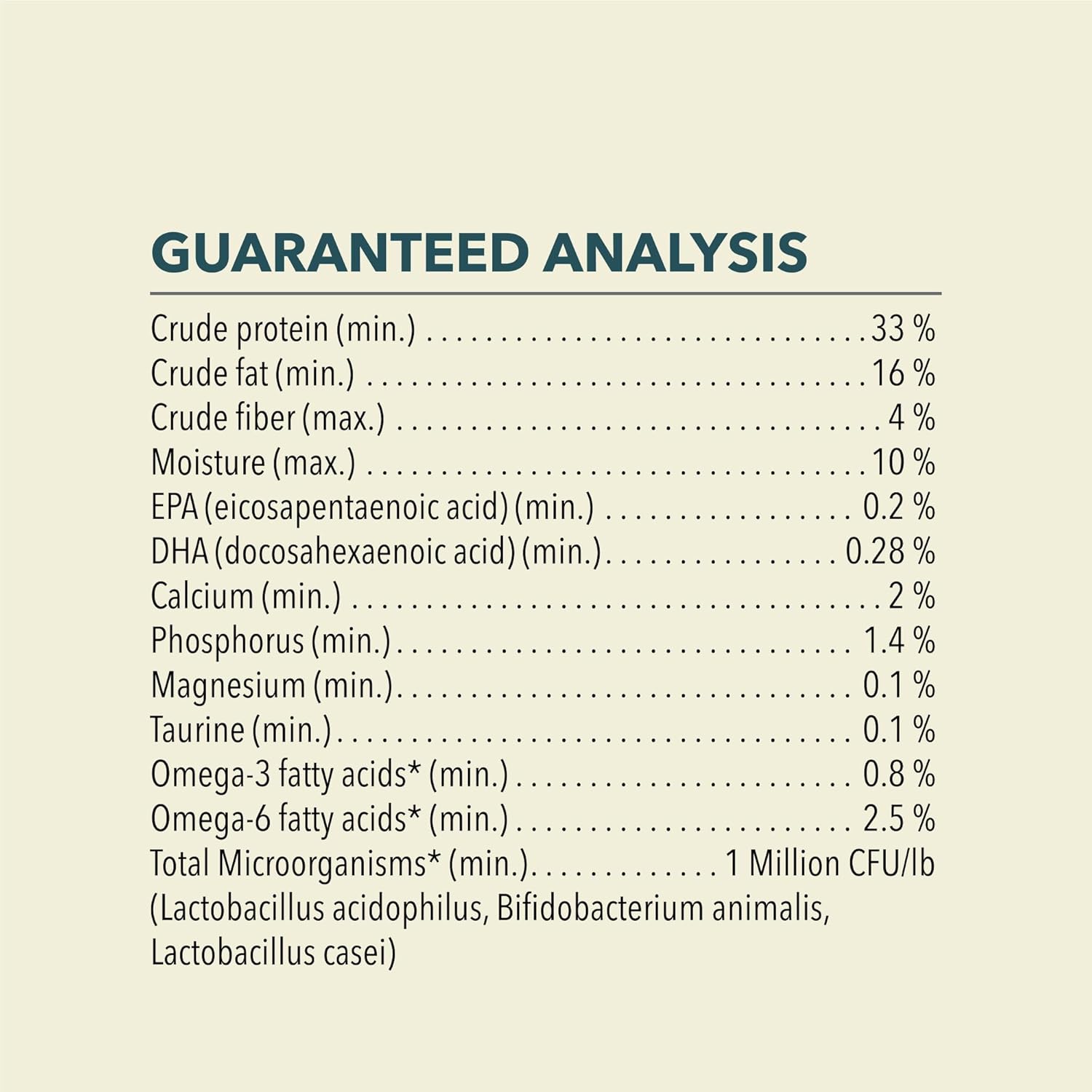 - Balanced dry cat food recipe with 65% animal ingredients*