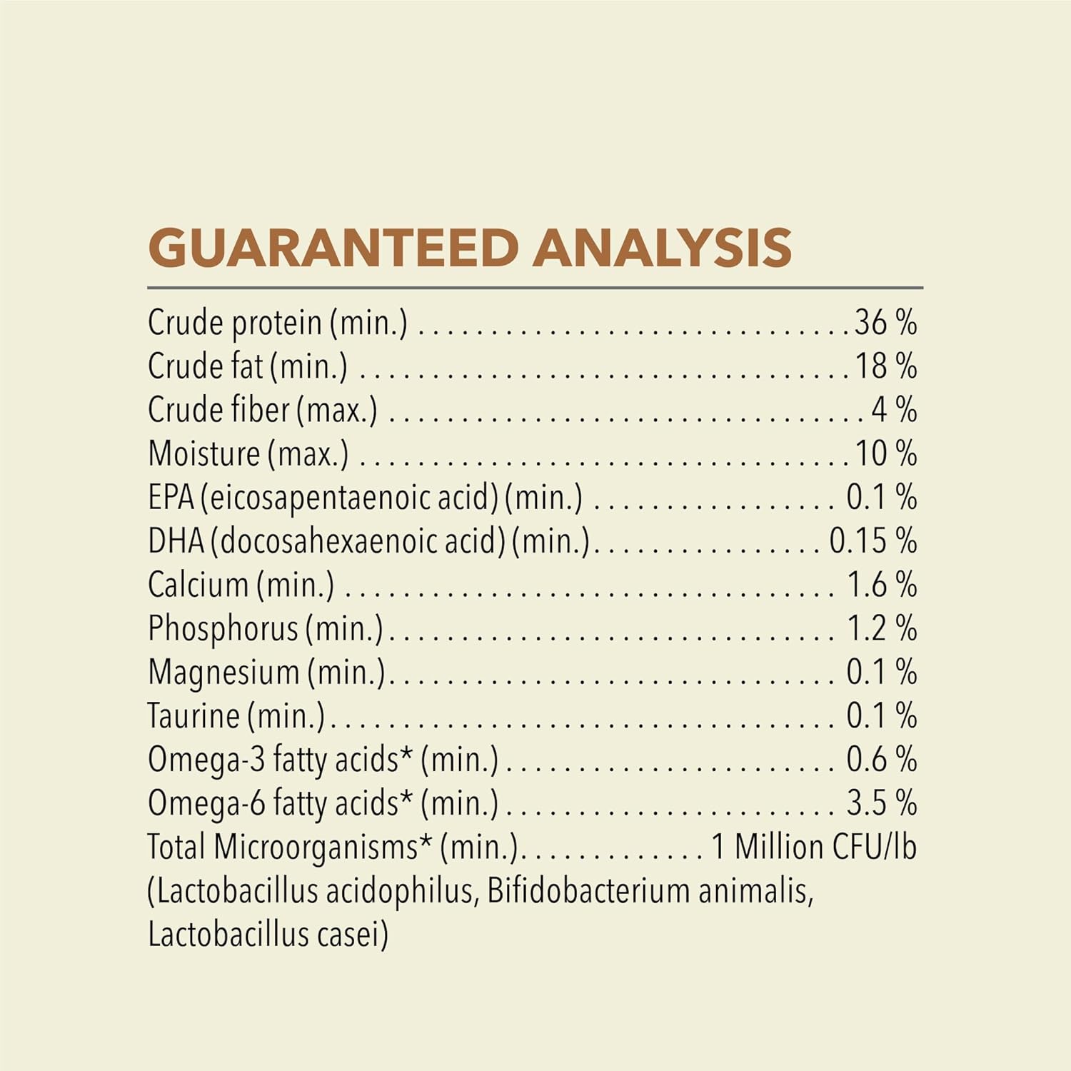 - High protein cat food made with free-run** chicken and turkey, and chicken liver, containing 75% quality animal ingredients**** and 25% fruits, vegetables and botanicals for a complete and satisfying cat food kibble