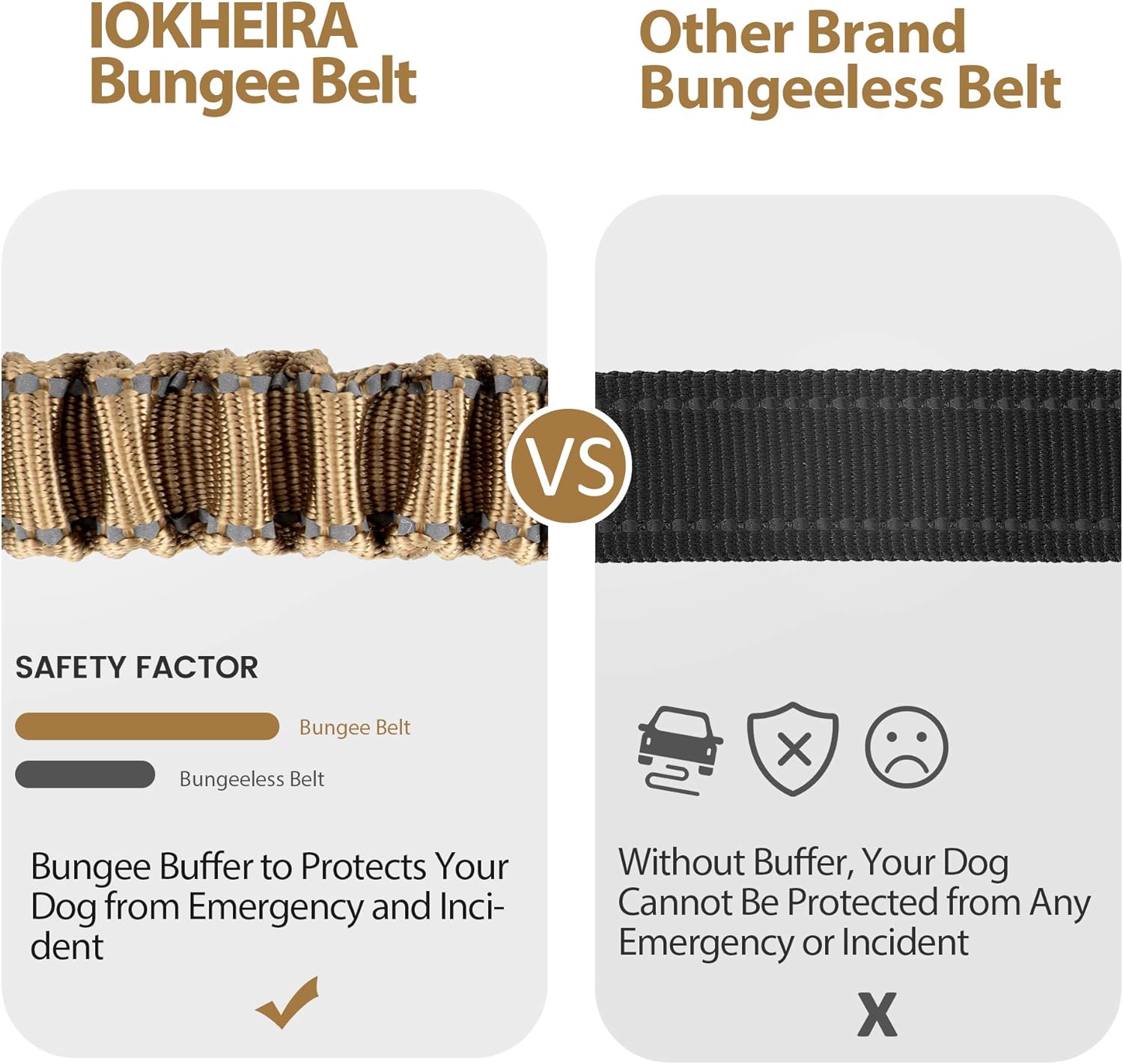 - Double Buckle Design: Our IOKHEIRA dog seat belt is designed with two different types of safety buckles on one end. One is hook latch, which can attach to the child safety seat and the car trunk. The other one is seatbelt buckle, which is the same as a typical human seat buckle, can stick directly into the seatbelt slot. Our buckle design is universal for all cars!