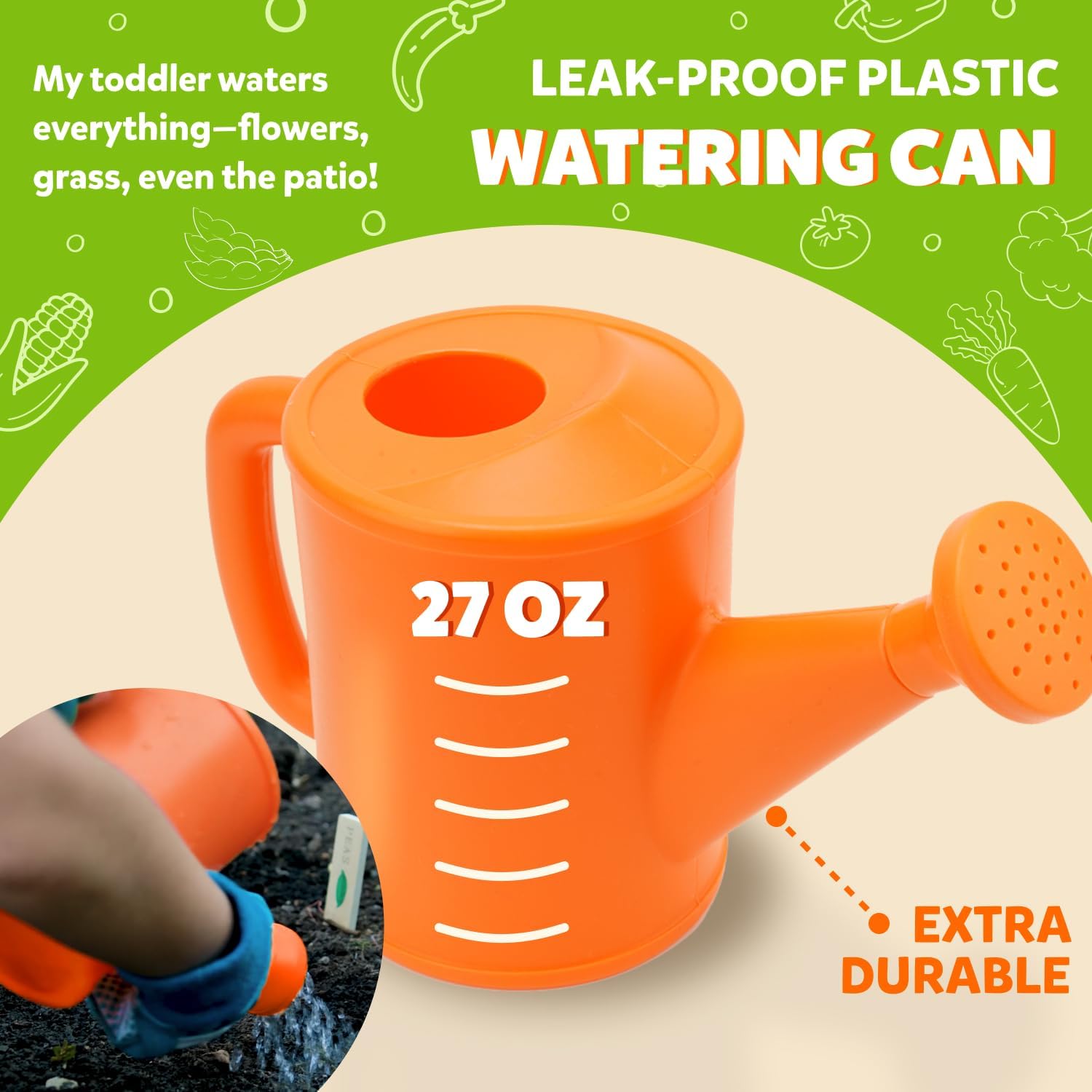 - DURABLE WATERING CAN – LEAK-PROOF, NO CRACKS OR CHIPS! – Made from thick, high-quality plastic that won’t break like cheaper ones. “My toddler waters everything—flowers, grass, even the patio!”
