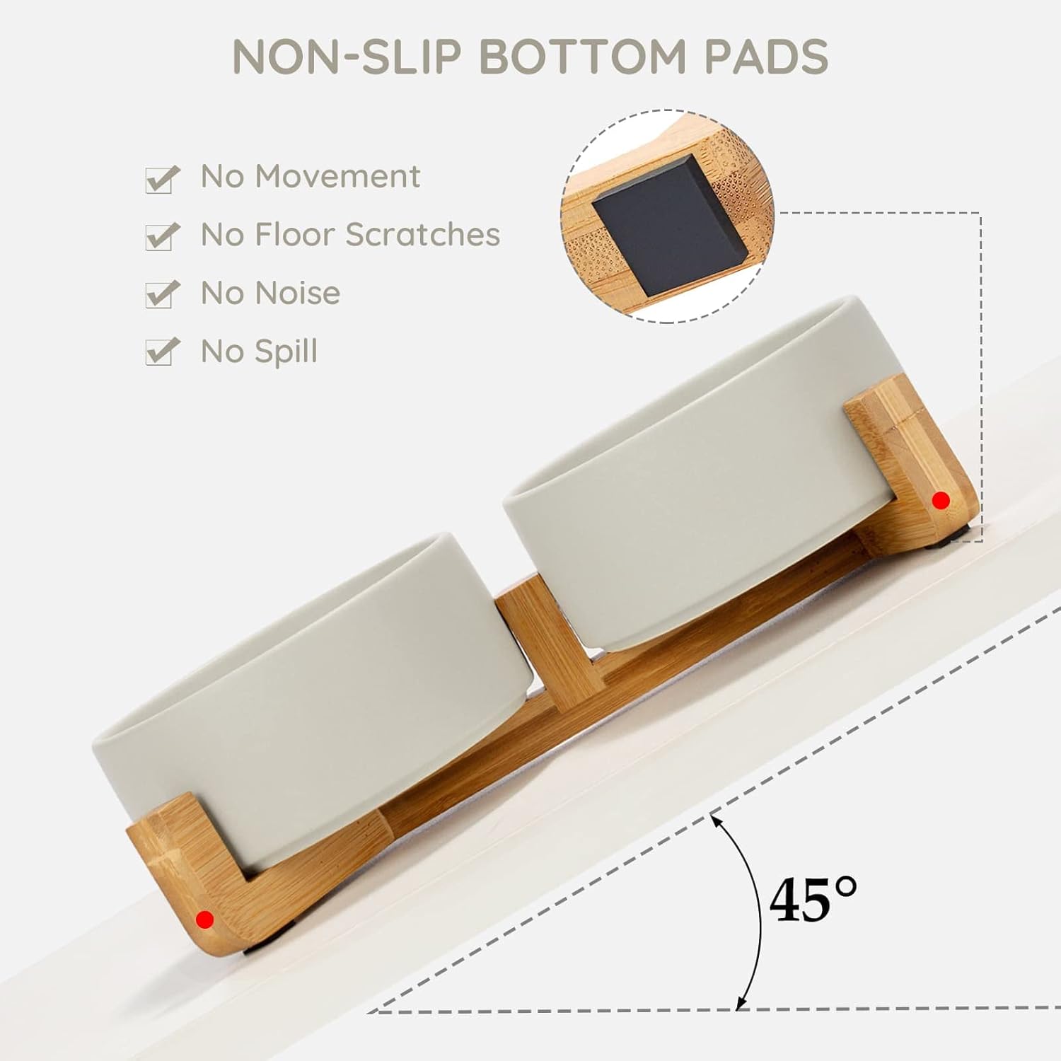 - Natural Wooden Stand:Unique wooden stand can effectively prevent food from spilling and keep the floor clean and tidy. Non-Slip bowl base, making it easy to pick up and put down