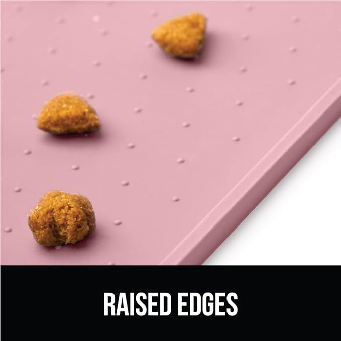 GORILLA GRIP 100% Waterproof Raised Edge BPA Free Silicone Pet Feeding Mat, Dog Cat Food Mats Contain Spills Protects Floors, Placemats for Cats and Dogs Water Bowl, Pets Accessories 28x18 Pink