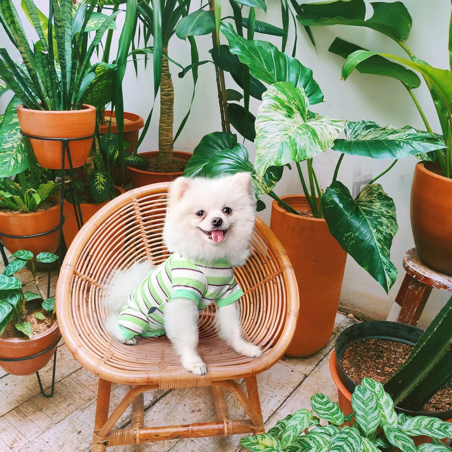 TONY HOBY Dog Pajamas, Male Dog Jumpsuit with Green Stripe, Dogs Clothes for Small Medium Size Dogs (Green&White, Boy, S)