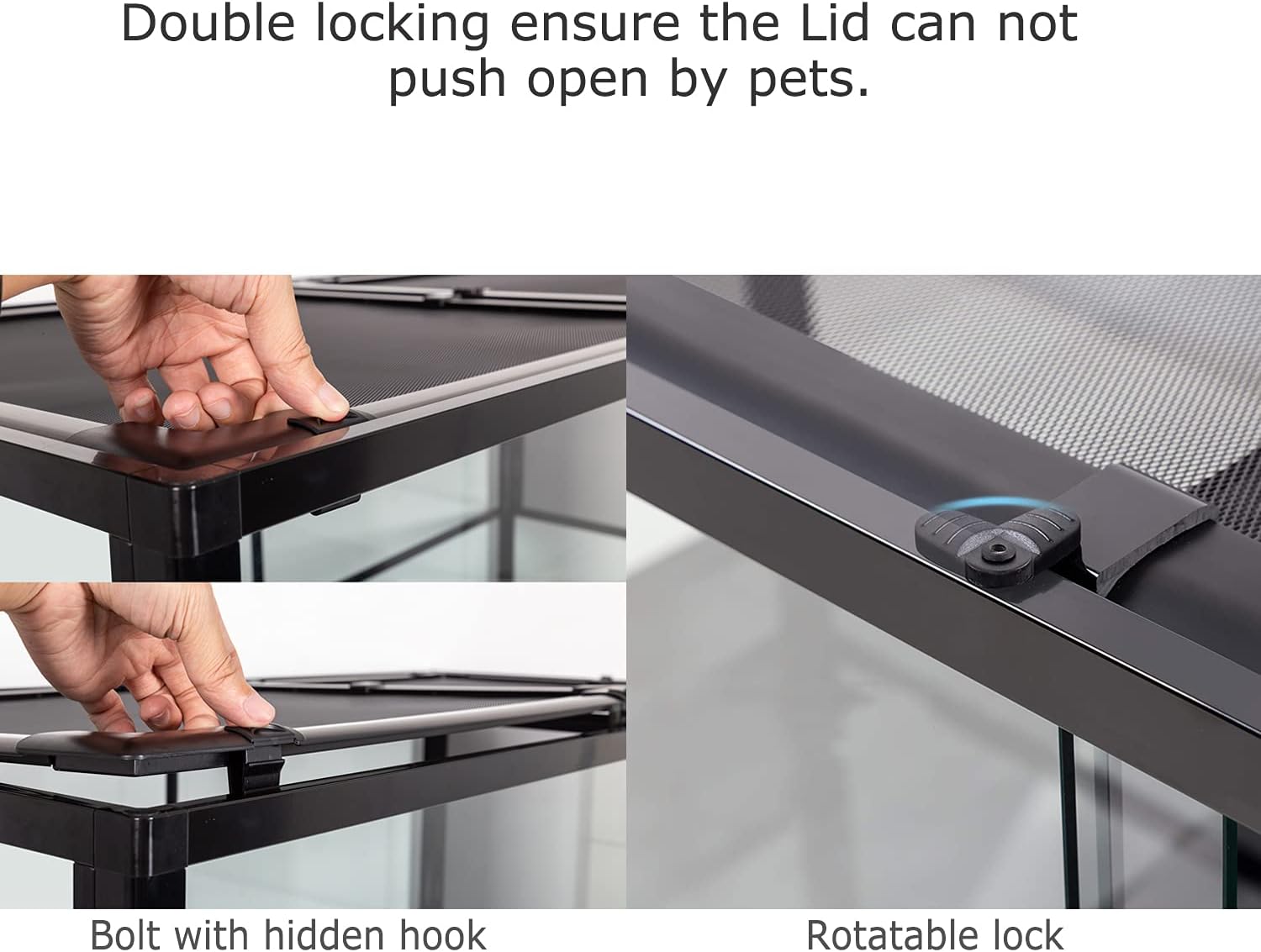 - 【Anti Escape】Security buckle on the lid ensure the tank closed tightly, prevent your reptile amphibian chameleon pets from escaping. And the security lock avoid the doors open accidently by your kids and keep your kids safe.