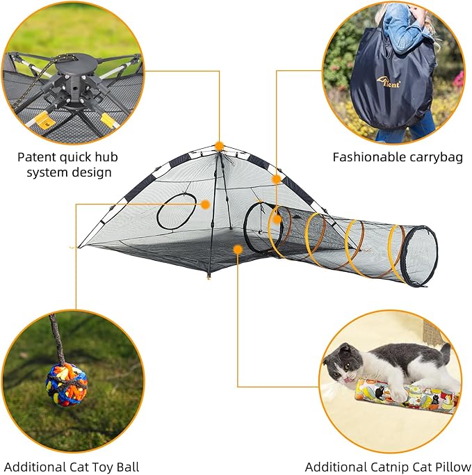Cat Tent for Indoor and Outdoor Cat Enclosures(Outdoor, Tunnel, and Playhouse) Kitty Playpen X-Large Portable Kitten Tunnel Play Tents for Cats Rabbits and Small Animals