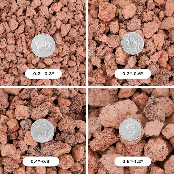 - Pure Natural Lava Rocks: Lava stone comes in a variety of sizes from 0.2" to 0.3". Volcanic rock is truly natural, available in black and red. No fillers, chemicals or colors added