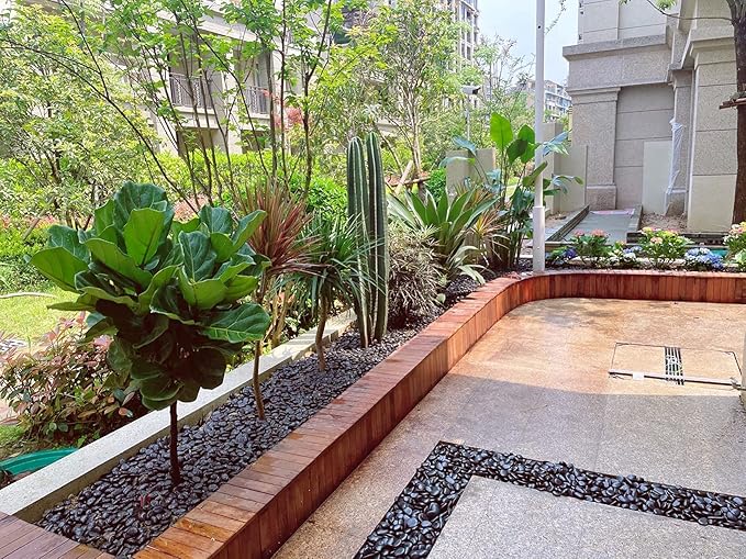 - 【D I Y Design】If you have a blank area on the edge of your terrace, you can cover it with black polished pebbles to look beautiful and high-end. Black pebbles are a great choice for creating amazing D I Y projects, perfect for people who like to personalize your work. If you have better ideas, please share with us