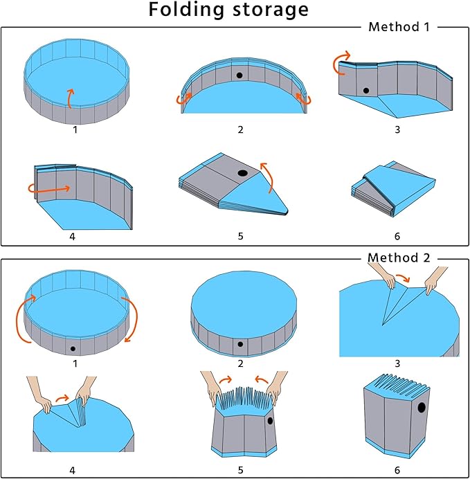 - Warm tips: Our professional pet swimming pool has a maximum water level inside of the wall. Do not exceed this line when you fill water. To prevent damaging the pool, remember to trim your dogs’ nails. To ensure the normal use, please place the pool on the flat and smooth ground without sharp objects. The last thing is that always put the swimming pool in the shade