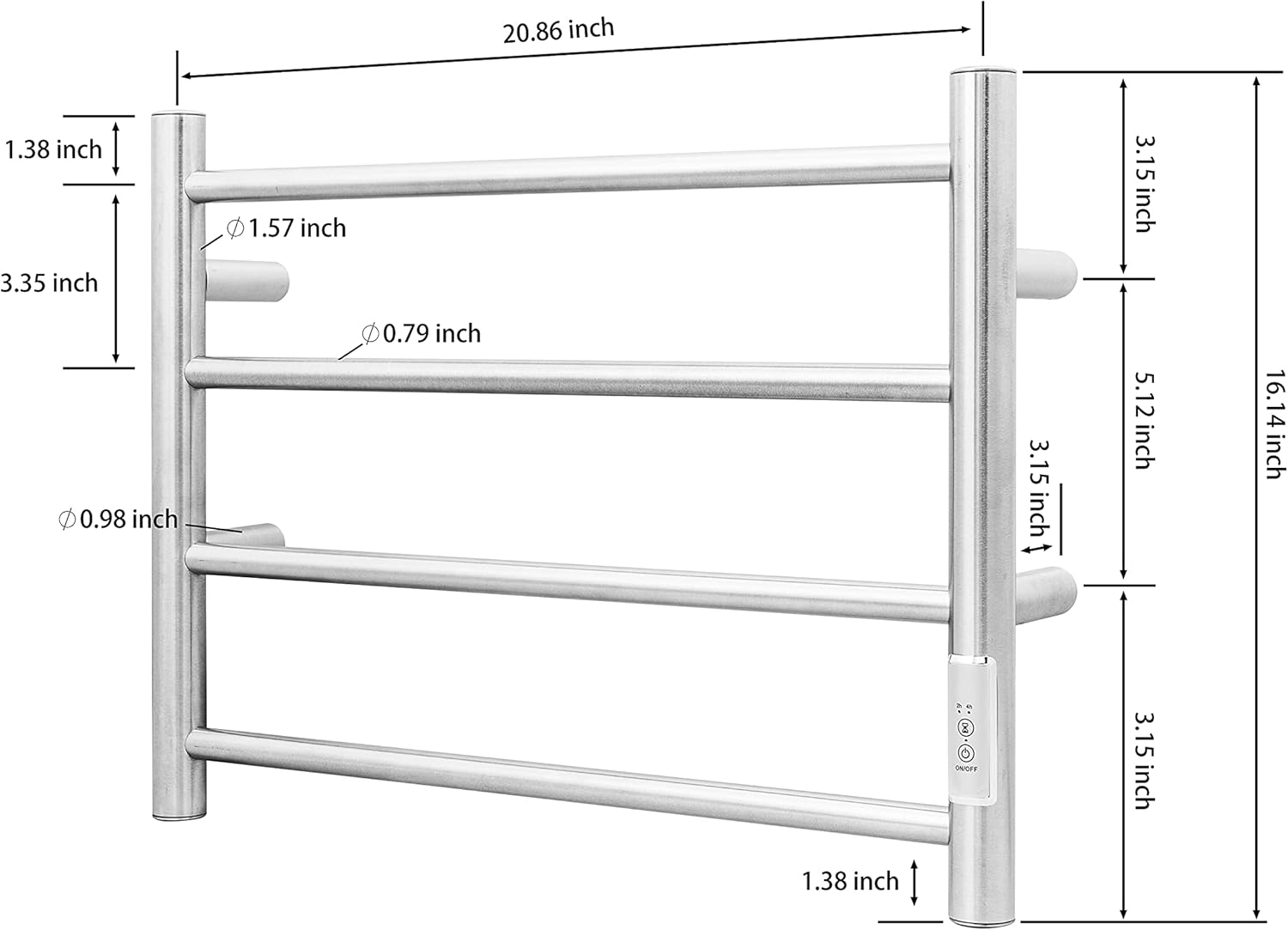 - Premium Quality with Elegant Look: The bath towel warmer is made of durable 304 stainless steel, easy to clean and durable use. IP56 Waterproof standard and wall-mounted design maximizes your floor space.