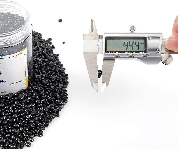 TWINKLING High Luster Round Fire Glass Stones, Marbles, Pebbles, Beads Gems for Fire Pit Vase Fillers Crafts Aquarium Garden Decoration, 3-6mm, 1-Pound Jar (Black)