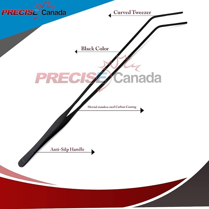 - PRECISE CANADA Aquarium Tweezers Stainless Steel Curved Tweezer with Carbonation Protection Coating Long Reptiles Feeding Tongs for Fish Tank Aquatic Plants Spider Snakes Lizards, 15 inch - Black