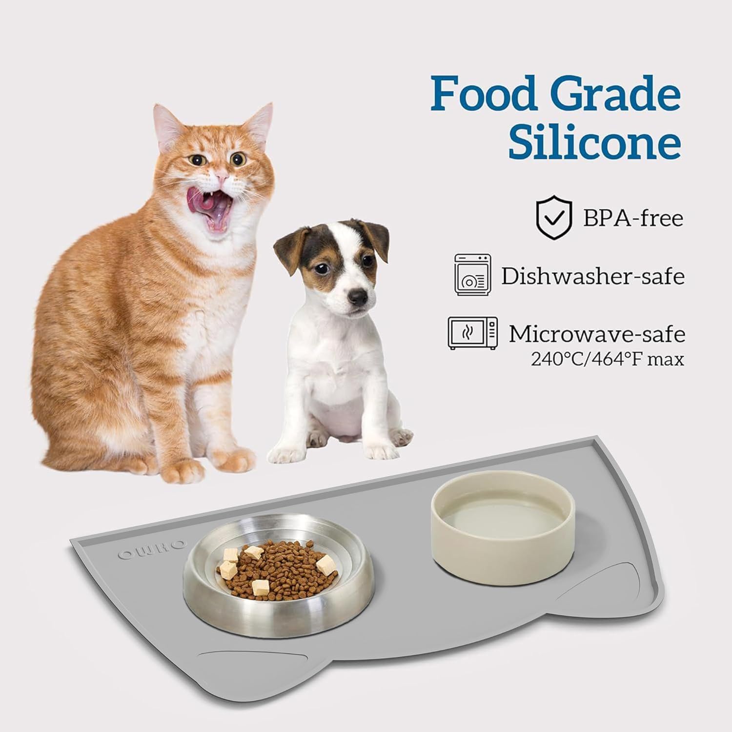 OHMO - Cat Food Mat, Silicone Pet Feeding Mat for Floor Non-Skid Waterproof Dog Water Bowl Tray, Easy to Clean Pet Placemat (Ash, 18 * 9.8'')