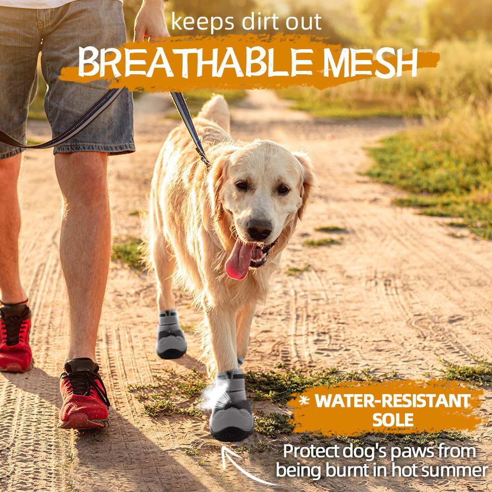 Dog Shoes for Large Dogs, Medium Dog Boots & Paw Protectors for Hardwood Floors, Outdoor Dog Booties for Hot Pavement Winter Snow Hiking, Breathable Dog Shoes with Reflective Strips Size 3