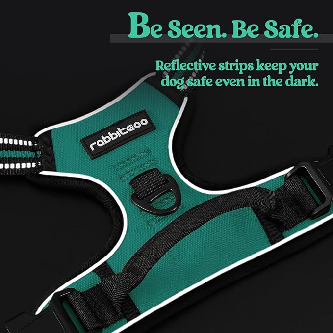 rabbitgoo Dog Harness No Pull with 2 Leash Clips, Adjustable Soft Padded, Reflective Oxford No Choke Pet Vest with Easy Control Handle for Large Dogs, Turquoise, XL