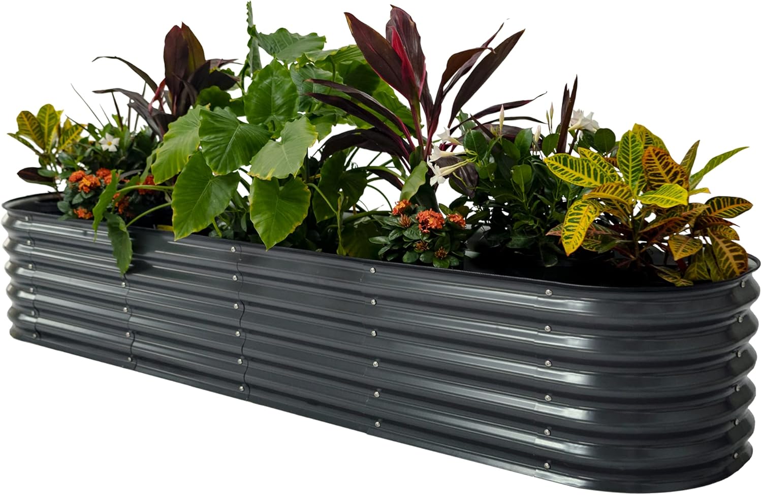 Vego garden Raised Garden Bed Kits, 17" Tall 9 in 1 8ft X 2ft Metal Raised Planter Bed for Vegetables Flowers Ground Planter Box-Modern Gray