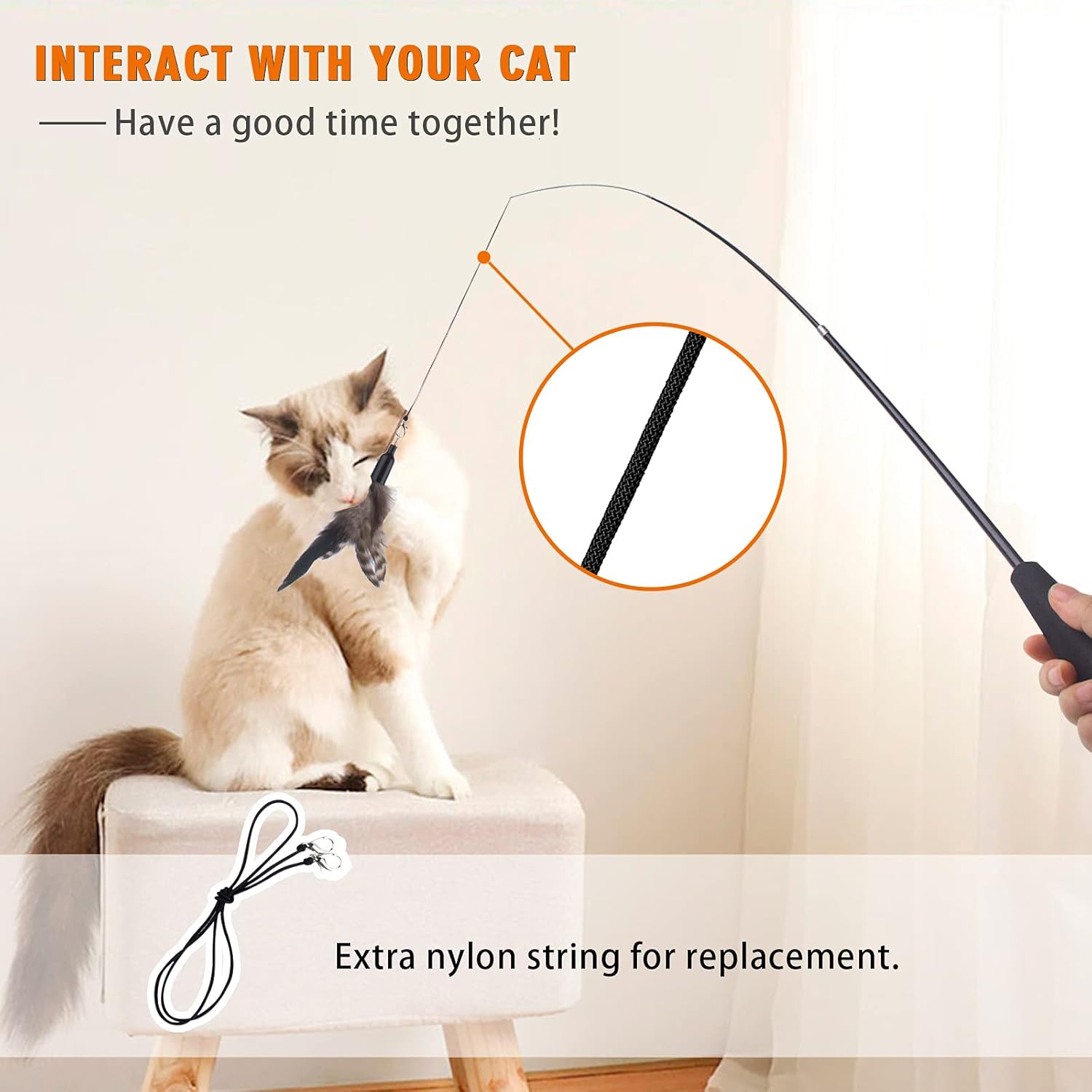 - 【BEST GIFTS】 These cat catcher toy are suitable for all ages cats. You will get an extra fishing line for replacement in addition to toys accessories and poles. The cute cat toys is a great gift for the cat or cat owner and it is a large surprise for them.