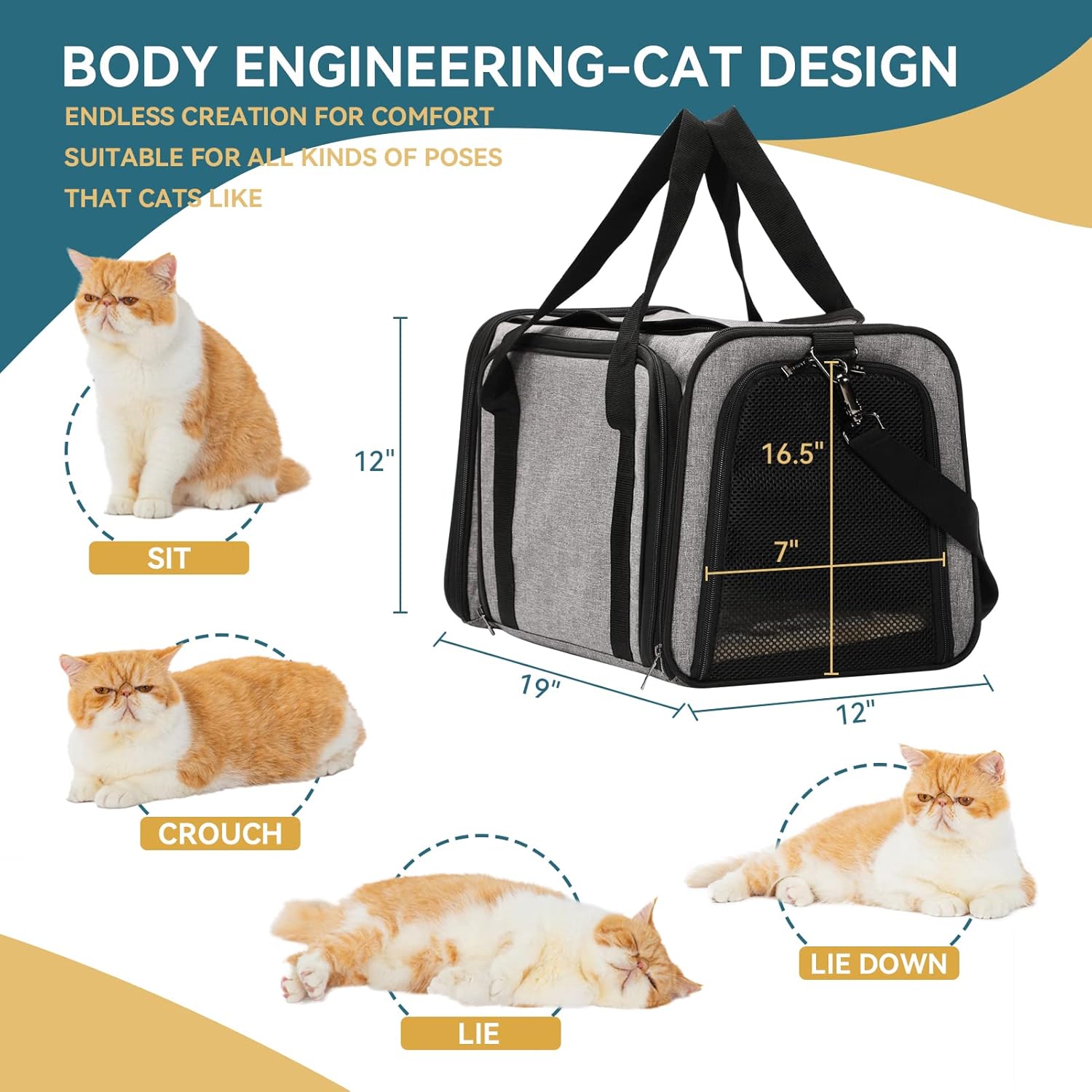 Petsfit Expandable Pet Carrier for Cat Or Puppy Up to 18 Pounds, Square Extension Add More Space, Washable Soft Pet Carrier for Home Outdoor Travel, 19"X12" X12" Gray