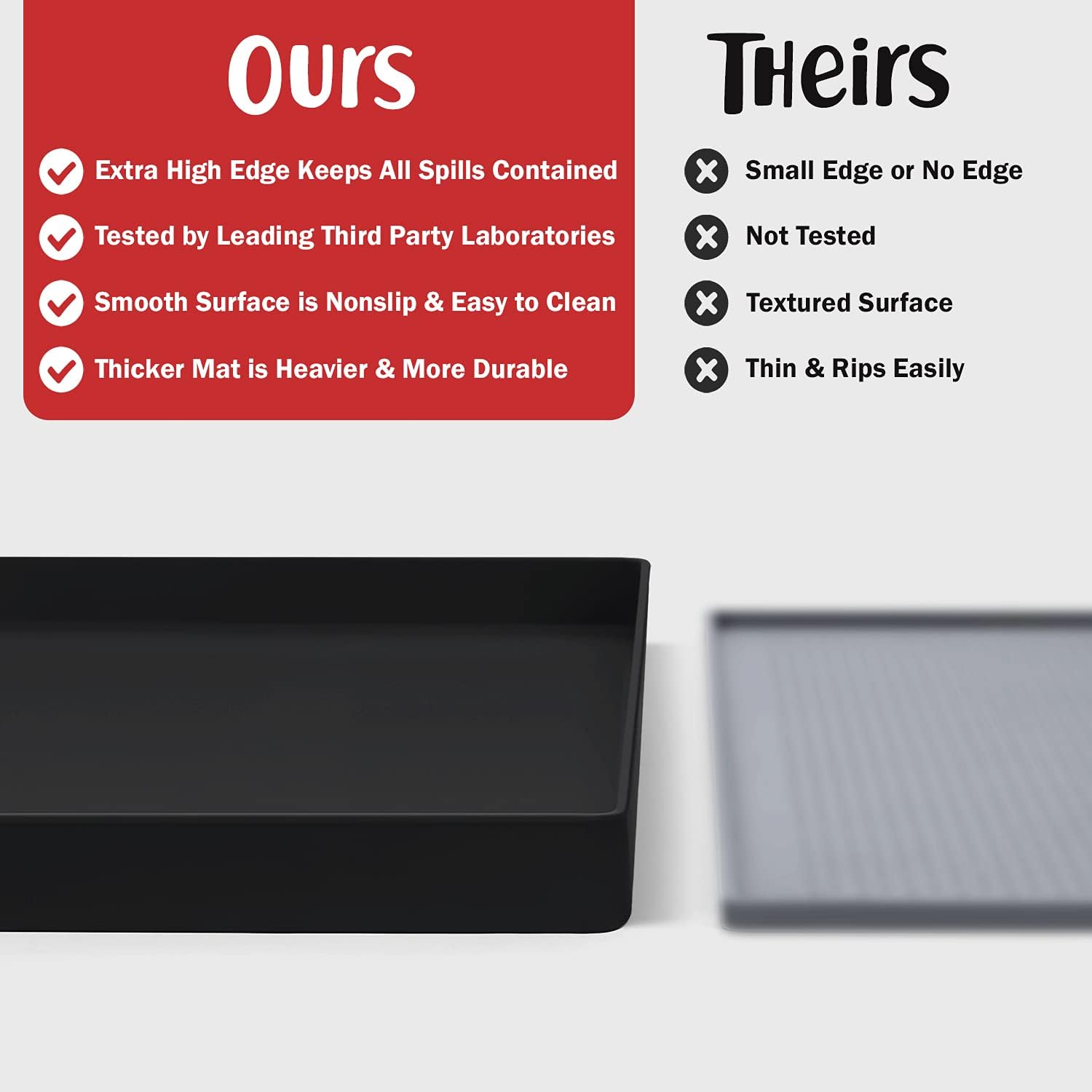 - Less Mess & Less Stress: Super high edge (0.6”) of DogBuddy Dog Food Mat keeps the spilled food and water on the mat and away from your beautiful floor. Silicone is naturally 100% waterproof, so what happens on the mat stays on the mat.