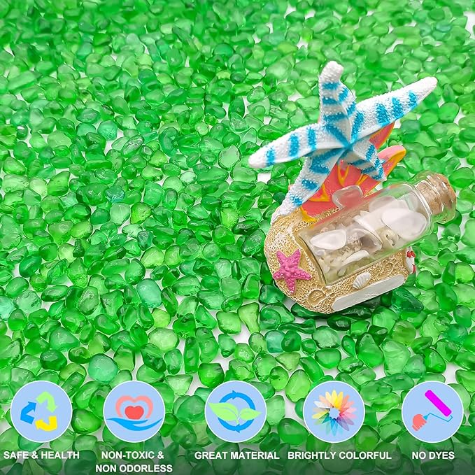 - Features: The glass gemstone is like river gravels, no dye or other methods of artificial coloring is used, never faded. Smooth edges no harm to animals and plants, you can rest assured that using. NB the glass pebbles are 0.93LB Heavy Enough BUT SMALL BAG