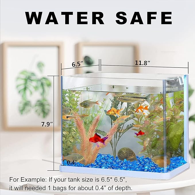 - How to Choice: Small crystal stones is 6-9mm (0.25”-0.35”), 0.93LB/Pack, about 0.3 liter capacity. For example, if your tank size is 6.3* 6.3", it will needed 1 bags for about 0.4” of depth