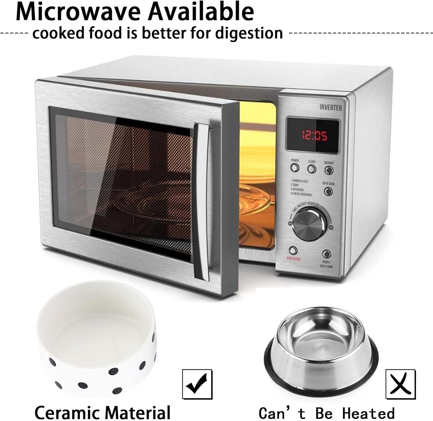 - Easy to Clean and Microwave Safe Ceramic Material - Cute dogs cats bowl with WOOD STAND Easy to Clean and Microwave Safe Ceramic Material - Cute dogs cats bowl with WOOD STAND design matches the home decorations. Ceramic bowl is made of Porcelain, this cat dog food water bowls are free of lead and cadmium. High temperature ceramic, no smell,durable.conveniently dishwasher Microwave safe so this ceramic food bowl can be easily cleaned. No Fuss.