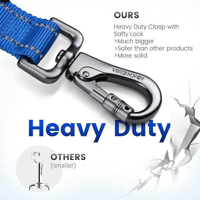 IOKHEIRA 6Ft /4Ft Dog Leash Rope for Large Dogs, Heavy Duty with Comfortable Padded Handle and Highly Reflective Threads,4-in-1 Multifunctional Dog Leashes with Car Seat Belt for Training (Blue)