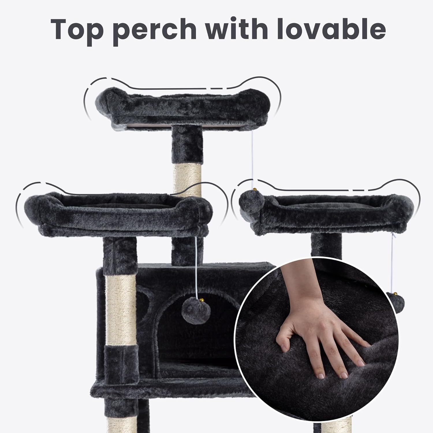 SHA CERLIN 68 Inches Multi-Level Large Cat Tree for Large Kitties/Big Cat Tower with Condo/Cozy Plush Pussycat Perches/Sisal Scratching Posts and Hammocks/Activity Center/Dark Grey